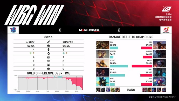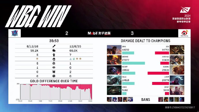 第35分钟,下路团战,WBG打出0换5团灭LNG一波结束比赛。