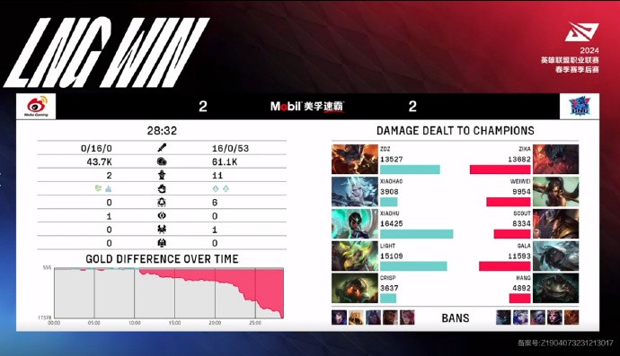 第28分钟,下路团战,LNG击杀WBG四人已16-0结束比赛。