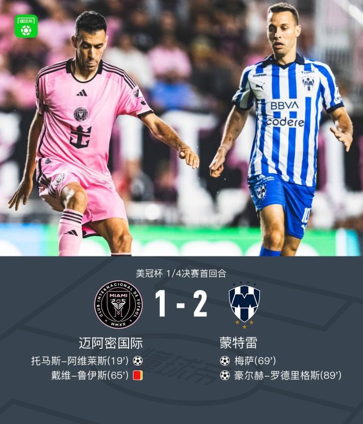 十人迈阿密国际1-2遭蒙特雷绝杀逆转,梅西缺阵,梅萨传射