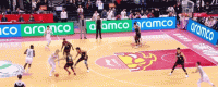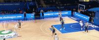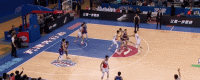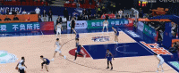 亮点: 最后一攻王哲林在弧顶持球时遭到包夹,在无人接应的情况下,眼看时间将到,王哲林晃起对手后,用一个夸张的前倾出手将球扔出,结果篮球神奇地空心命中。
