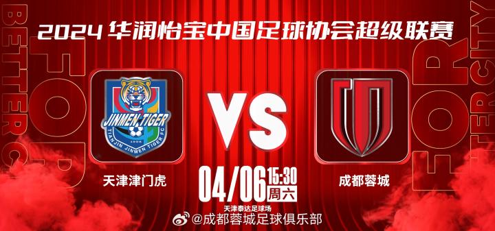 4月6日15点30分,中超第4轮,天津津门虎vs成都蓉城