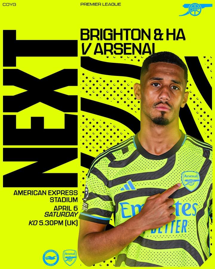 0点30分,英超第32轮,布莱顿vs阿森纳