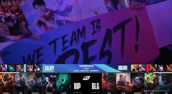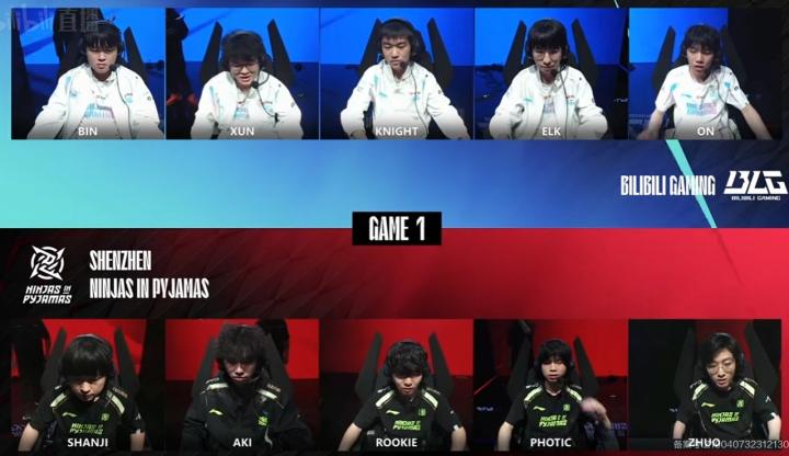 第15分钟,NIP中野上路越塔击杀knight,Rookie拿到一血,随后BLG下路组赶到收掉Aki。