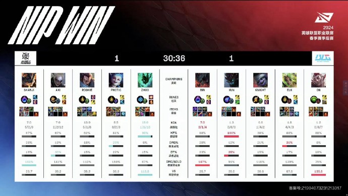 LPL季后赛:BLG 3-1 战胜NIP,knight节奏拉满挺进胜者组决赛