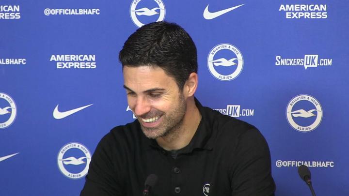 率队在英超第32轮客场3-0击败布莱顿之后,阿森纳主教练阿尔特塔出席了新闻发布会。