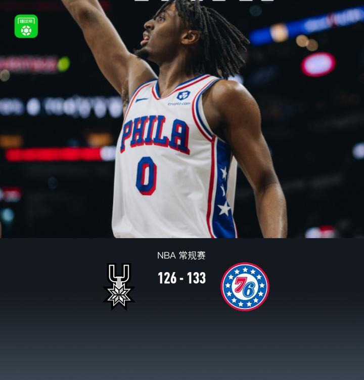 加时赛马刺布拉纳姆拿下6分,76人小肯扬-马丁拿下6分,最终马刺126-133不敌76人