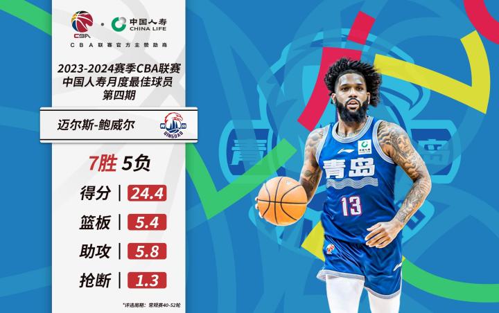 青岛国信海天篮球俱乐部球员鲍威尔本月出战12场比赛取得7胜5负,场均仅出场25分钟便可得到24.4分、5.4篮板、5.8助攻、1.3抢断的全面数据,同时投篮命中率超过五成,三分命中率达到43.2%。青岛国信水产也在鲍威尔的帮助下重返季后赛。