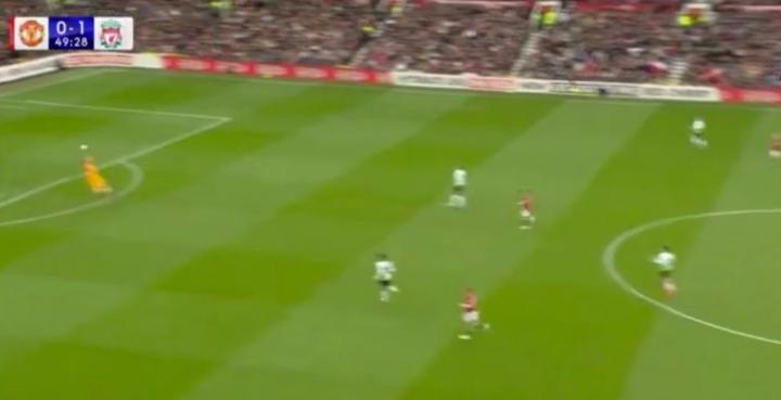 英超第32轮焦点战,曼联主场2-2战平利物浦。B费抓住利物浦失误在中圈打进扳平比分的进球,值得注意的是,当时凯莱赫还在禁区外,差点就碰到了皮球。