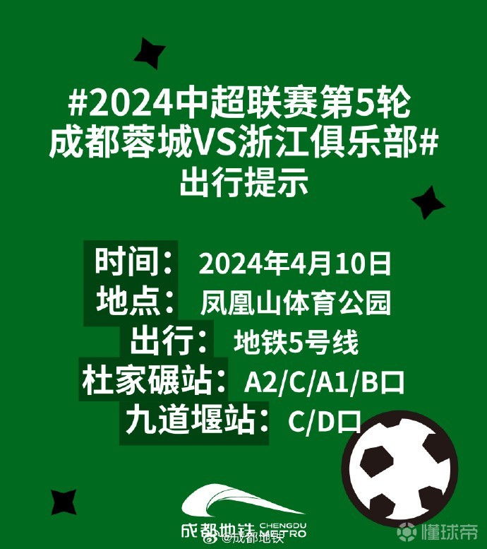 4月10日,成都蓉城主场对阵浙江队,由于球市火爆,人群密集,交通压力较大,成都地铁专门发布了出行建议。