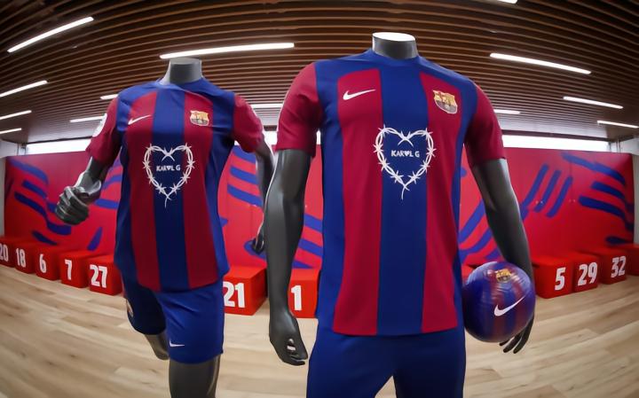 KAROL G 标志性的铁丝网心形徽标将首次出现在4月13日巴萨女足对阵比利亚雷亚尔的球衣上。一周后,即4月21日,男足一线队将在伯纳乌球场参加西班牙国家德比,他们也将穿上这一款球衣。