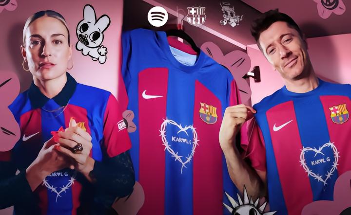 巴萨延续了与Spotify合作的传统并持续推出相关联名球衣,这一次是与哥伦比亚女歌手KAROL G合作,她连续四年成为Spotify全球播放量最多的拉丁音乐女艺人,她的《Provenza》、《TQG》和《Qlona》等歌曲在全世界流行。