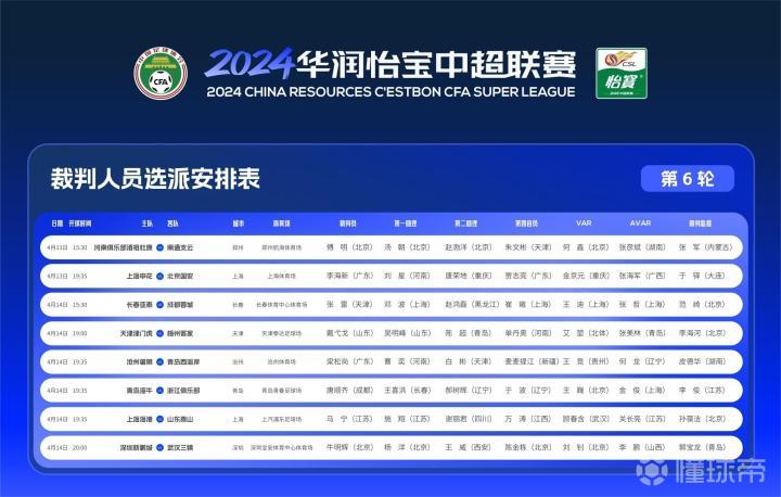本轮中超联赛裁判选派已经正式公布,值得一提的是,本轮比赛将见证女性裁判员在中超的首次亮相。四川足协的国际级裁判谢丽君将加入马宁的裁判组,在本轮上海海港vs山东泰山的中超焦点战中担任边裁。