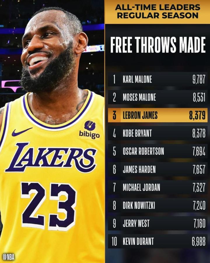 又一里程碑!詹姆斯超越科比,升至历史罚球总命中数榜第三onegolden @懂球帝2024-04-13 10:10北京时间4月13日,NBA常规赛,湖人客场挑战灰熊,比赛进行中。第四节比赛中,詹姆斯迎来里程碑,生涯罚球数来到8379个,超越科比升至历史常规赛罚球总命中数榜第三。排在詹姆斯前面的是摩西-马龙(8531个)、卡尔-马龙(9787个)。展开更多