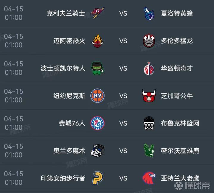 收官战,76人主场迎战篮网,步行者主场面对老鹰,魔术主场对阵雄鹿,热火主场对阵猛龙。
