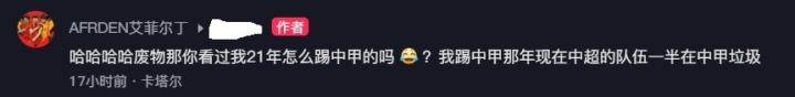 艾菲尔丁:“哈哈哈哈废物,那你看过我21年怎么踢中甲的吗?我踢中甲那年现在中超的队伍一半在中甲。垃圾。”
