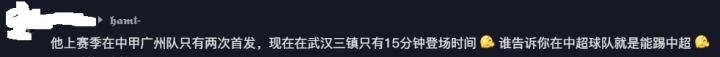 网友:“他连中甲都踢不明白”、“上赛季在中甲广州队只有两次首发,现在在武汉三镇只有15分钟登场时间。谁说在中超球队就是能踢中超?”