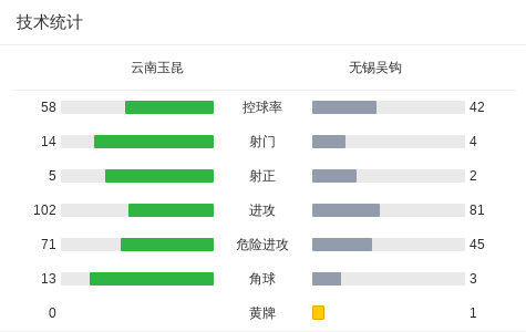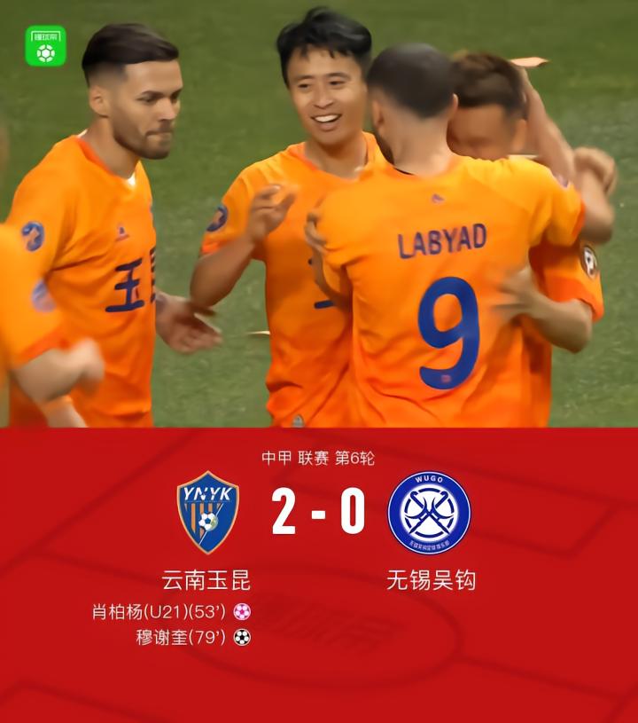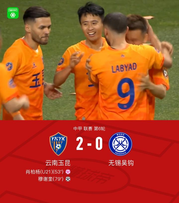 云南玉昆2-0无锡吴钩取5连胜,穆谢奎建功