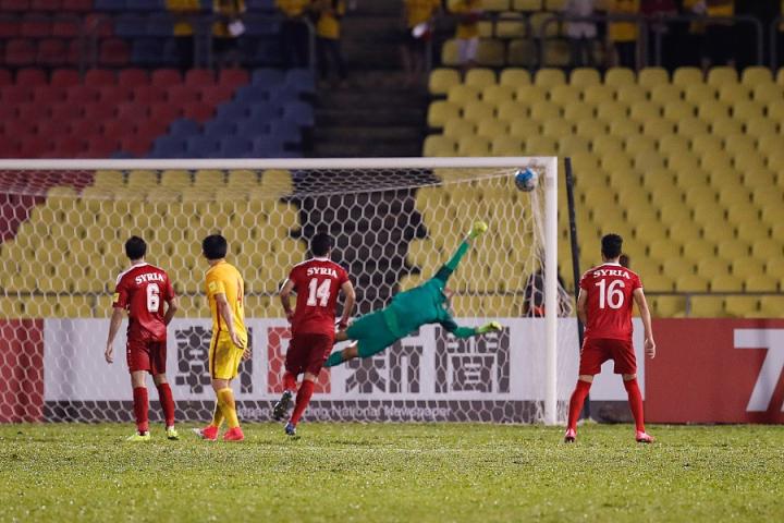 比赛第10分钟,马尔迪基安直塞,尤瑟夫杀入禁区被出击的曾诚扑倒,主裁判果断判罚点球。马瓦斯两次主罚命中首开记录,叙利亚一球领先。第66分钟,张琳芃角球进攻中被纳克达利从背后拉倒,主裁判再度判点。郜林主罚一蹴而就,中国队扳平比分!