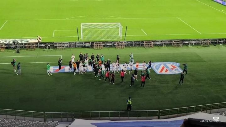 从小红书博主Olivia晒出的照片中可以看到,国安球员在赛后来到客队球迷看台谢场时特意避开了申花队的队徽,展现了对申花队的尊重。