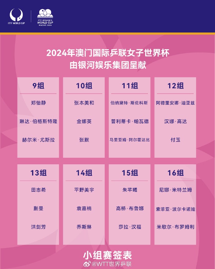 澳门世界杯女单分组出炉,蒯曼小组赛中将战韩国选手田志希