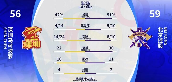 北京时间4月15日,CBA季后赛12进8“生死战”,深圳男篮主场迎战北控男篮,半场比赛结束,北控59-56领先深圳。