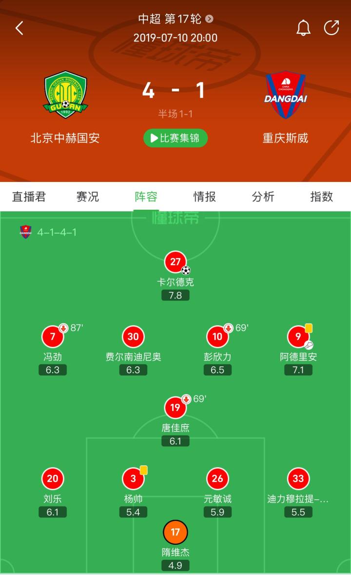 2019年7月10日,北京国安4-1重庆斯威,重庆斯威先进一球后被逆转。那场比赛,重庆斯威的门将是隋维杰。