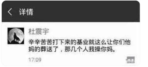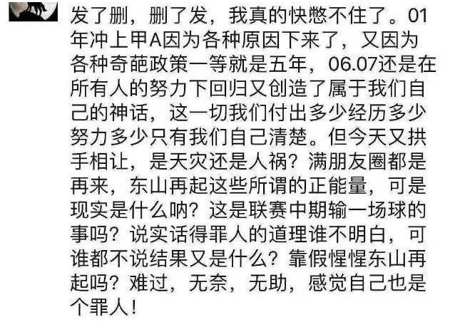 2018赛季长春亚泰降级后,亚泰功勋球员杜震宇愤怒地发文——辛苦打下来的基业就这么让你们他X的葬送了,那几个人我X你妈。