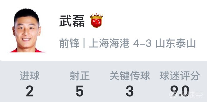 懂球帝2024赛季中超第6轮MVP:武磊