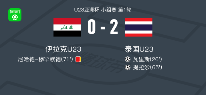北京时间4月16日U23亚洲杯 小组赛 第1轮,伊拉克U23主场对阵泰国U23。泰国U23瓦里斯破门,提拉沙破门。最终比分伊拉克U23 0-2 泰国U23。