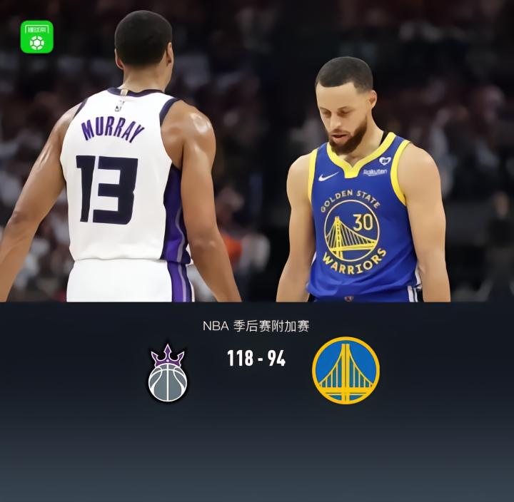 北京时间4月17日NBA季后赛附加赛西部第9国王主场迎战西部第10勇士,首节国王福克斯、穆雷联手领先9分,次节勇士加强防守将分差追至4分,第三节国王进攻端回暖领先15分,末节勇士无力反扑国王进步拉大分差,最终国王118-94勇士。