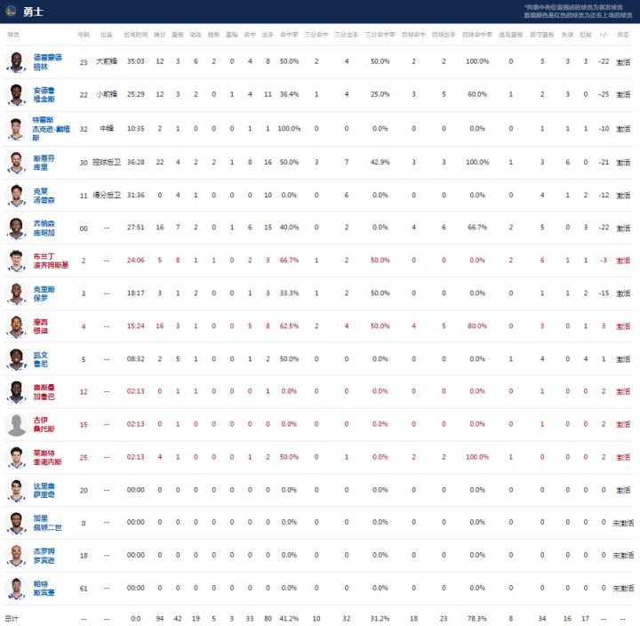 金州勇士库里22分4板2助2断1帽,穆迪16分4板1助,库明加16分7板2助1帽。