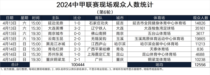 更加了不起的是,35161不仅仅是迄今为止中甲联赛的上座率纪录,更是在同中超联赛第六轮上座率的横向对比中“赢”得了头筹。数据显示,第六轮中超联赛最高到场观战人数由上海申花主场对阵北京国安的比赛达成,共计吸引了31941到场观战。而这场大连英博坐镇梭鱼湾迎战辽宁铁人的中甲联赛到场人次,超过了同时段中超联赛的最高上座率。35161人次,不仅霸榜中甲,更是冠绝本轮中国足球的三级职业联赛!