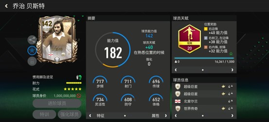基础能力值142的贝斯特配备了猎鹰天赋,大大提升了自身的加速、射门、传中、弧线、盘带五项数据。在花式配置上,贝斯特基础花式为高级油炸丸子,花式星级达到五星,他的边路突破更加犀利。