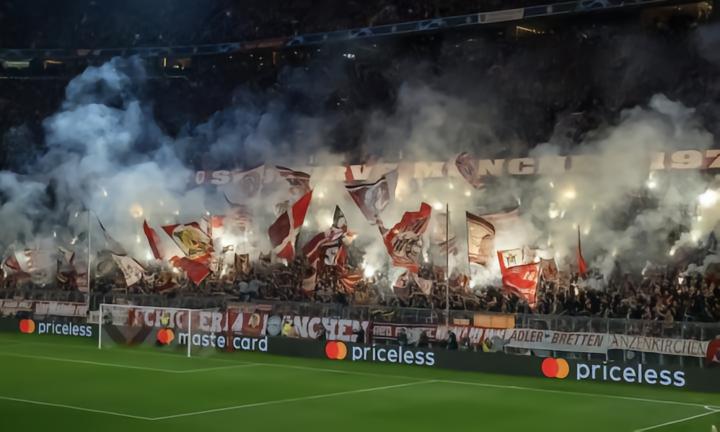 北京时间4月18日凌晨,欧冠1/4决赛次回合中,拜仁在主场1-0击败阿森纳,总比分3-2晋级半决赛。在首回合客战阿森纳时,拜仁球迷被禁止到客场观赛,对此,拜仁球迷再次燃放烟火并打出横幅抨击了欧足联。