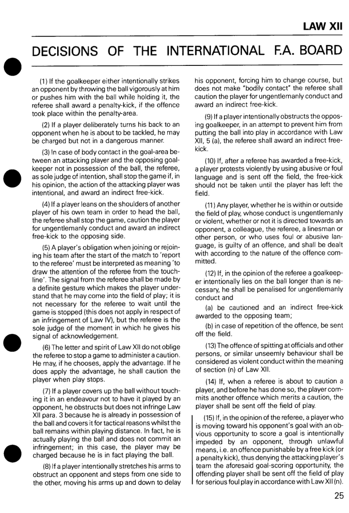1991/92赛季的《足球竞赛规则》中,这一条内容从“IFAB强制性指示”被移至了“IFAB决议”,正式沿用了下来。
