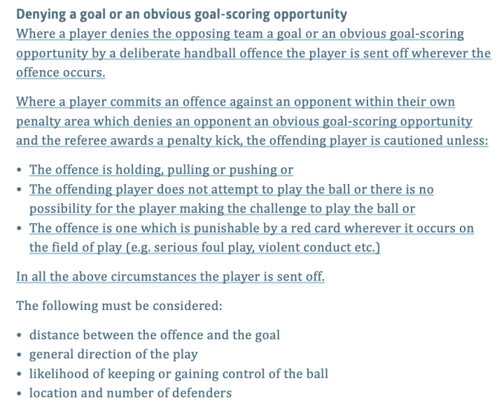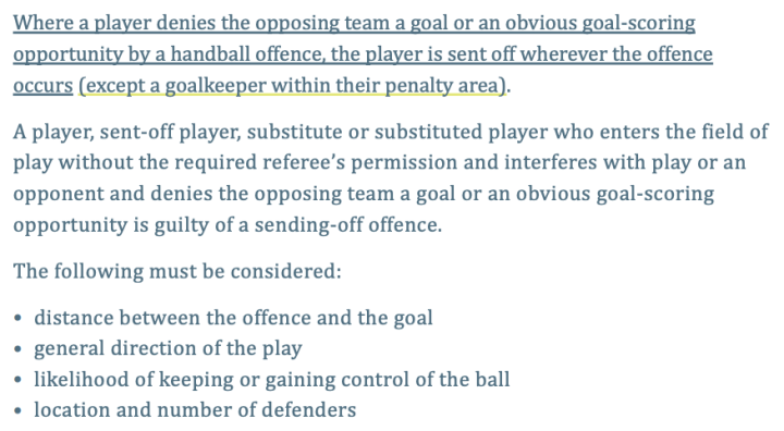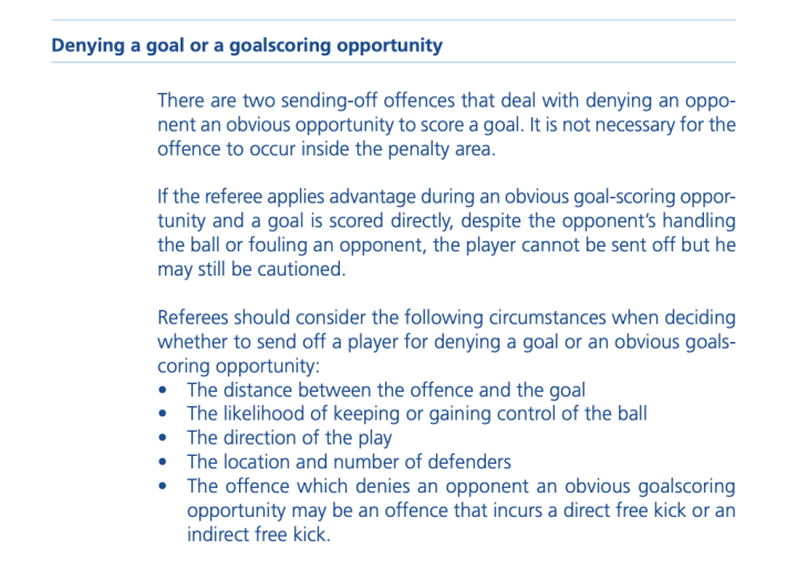 在这次修订过程中,DOGSO的地位也再一次提升,从“IFAB决议”被纳入了正文,正式成为了规则的一部分。