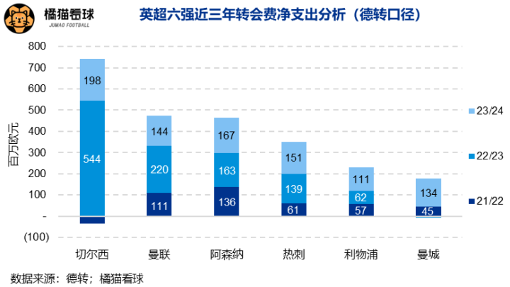 就转会市场闹出的动静来看,兵工厂的确颇有土豪做派。统计近三年的转会费净支出,阿森纳只被易主后的切尔西稳压一头,与曼联水平相当,更是远远超过了争冠对手曼城和利物浦。