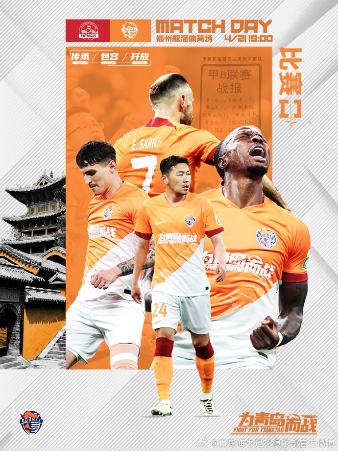 青岛海牛发布战河南海报,借甲B元年的比赛激励球队