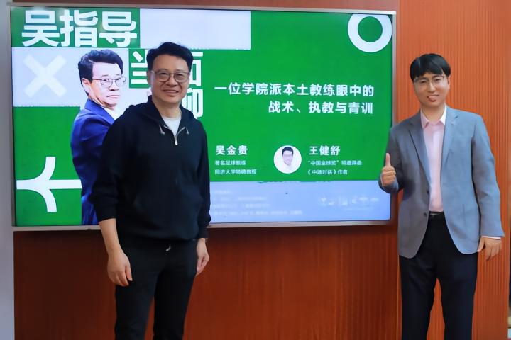 在第一部分,吴金贵首先分享了其在北京体育大学求学,科隆体育大学留学的经历,并特别强调足球没有捷径可走,必须要脚踏实地按照逻辑一步步完成,需要有更多的中国足球人走向世界、虚心学习、少分壁垒、共享经验。