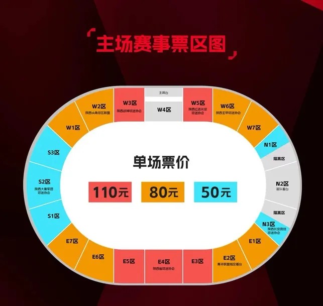 2、针对于陕西省体育场看台区域位置对等平移至渭南体育中心看台,由于两座体育场座位数量不同,尽可能调整至对应观赛看台,但是由于体育场坐席数量问题有些区域不能做到尽善尽美,敬请谅解。