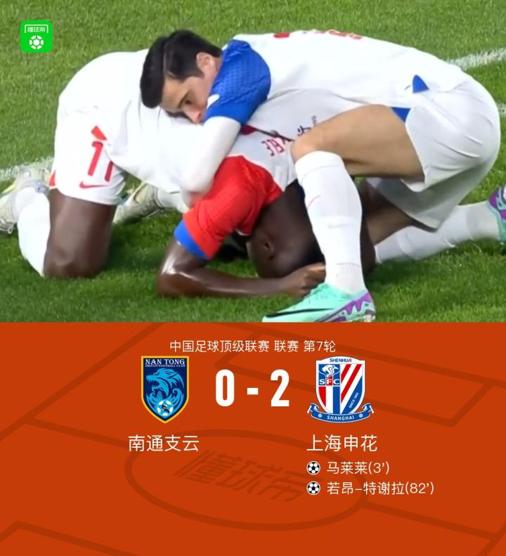 【申花客场2-0南通,马莱莱、特谢拉建功,路易斯、徐皓阳助攻】