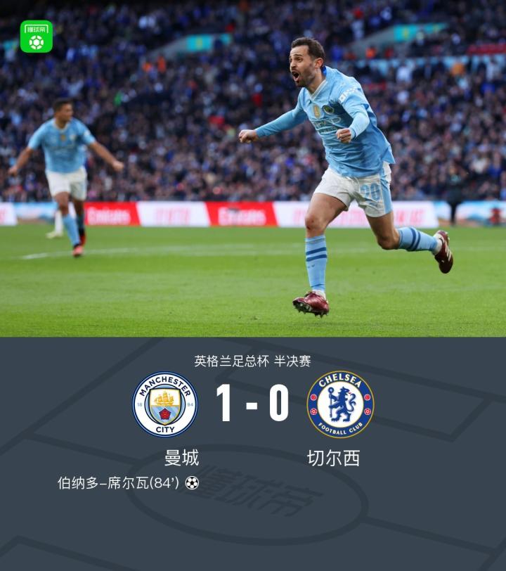 【曼城1-0切尔西晋级足总杯决赛,B席绝杀,雅克松错失单刀】