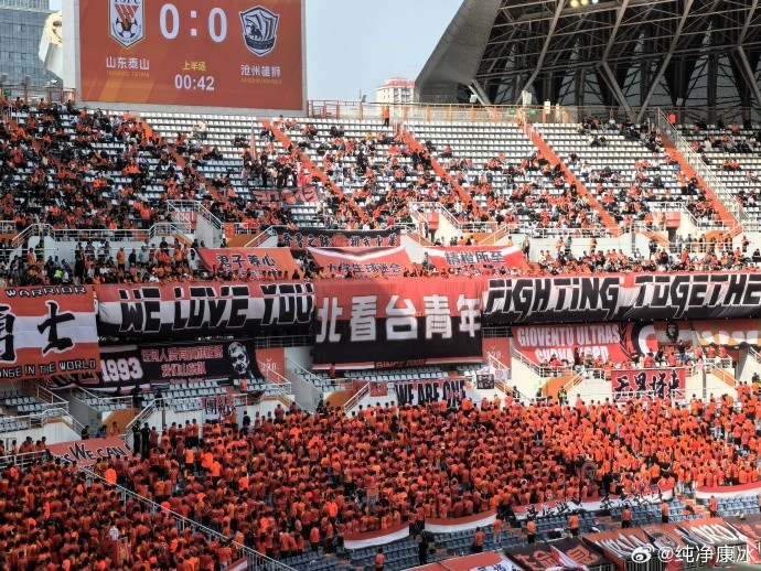 【无声抗议,山东主场北看台球迷开场10分钟集体背对球场静默】