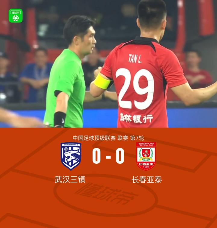 【三镇0-0亚泰:谭龙进球被吹,恩里克中框,亚泰1次射门0射正】