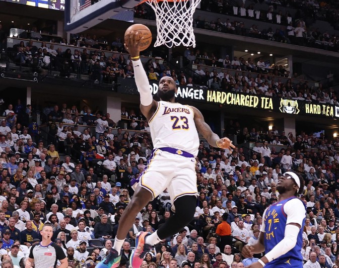 詹姆斯19分&逆天压哨三分,半场湖人60-57领先掘金