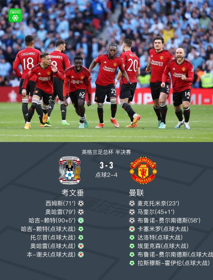 曼联被让三追三后点杀考文垂晋级足总杯决赛,奥纳纳扑点