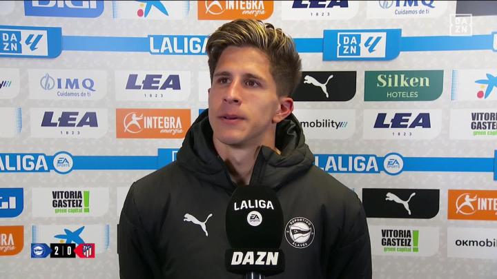 对我来说,这是一场特殊的比赛,这是我第一次在西甲首发,而且对手还是马竞。受伤这几个月很难熬,我向你保证我比谁都努力,我从未经历过这么难的时候……这是对我一直以来所作努力的回报。也要感谢马竞,他们负责了我一开始的康复工作。感谢阿拉维斯给了我时间,感谢教练组,感谢我们的球迷一直为我们助威,让我们再次感受到门迪所罗察球场的威力。