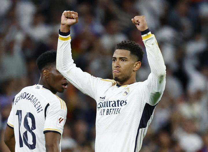 至此贝林厄姆在他加盟皇马后的前两场西班牙国家德比中均有进球,他也是自2007年的范尼斯特鲁伊之后,近17年来首位做到这一点的球员。