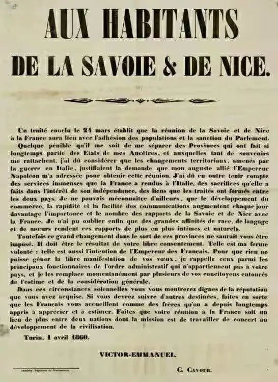 天下没有免费的午餐。 法国的帮忙是有条件的。那就是意大利要把萨伏伊地区和尼斯割让给法国。