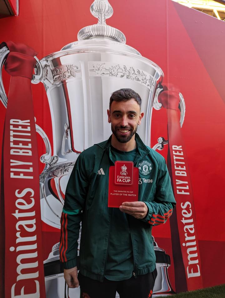 赛后,布鲁诺-费尔南德斯当选足总杯官方全场最佳球员,并领取了奖杯。